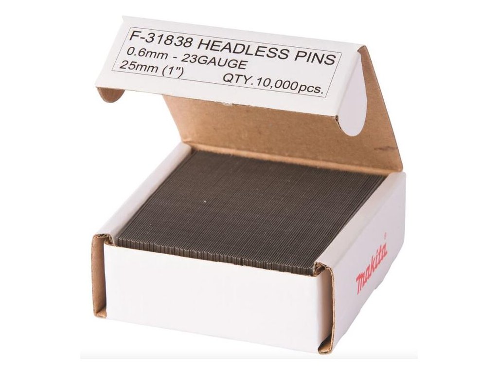 Makita F-31838 je balenie klincov typu Pinky s rozmermi 0.6 mm x 25 mm. Tieto klince sú špeciálne navrhnuté pre presné nastreľovanie do dokončovacích materiálov a líšt pomocou Makita klincovačiek. Balenie obsahuje veľké množstvo 10 000 ks.