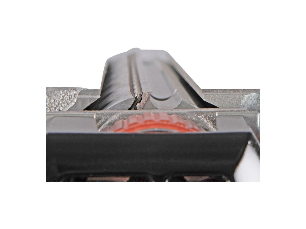- Zväčšený otvor na vyhadzovanie triesok zabraňuje upchávaniu