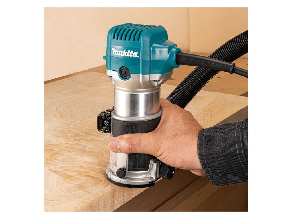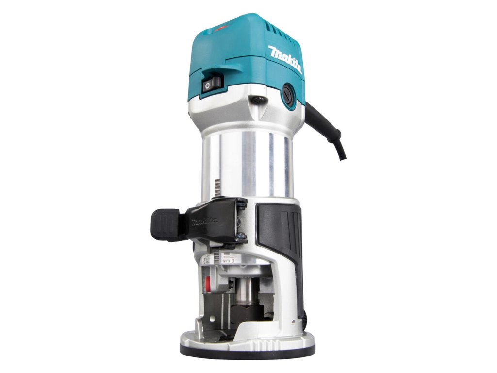 - Presne nastaviteľné a uzamykateľné jemné nastavenie hĺbky frézovania.