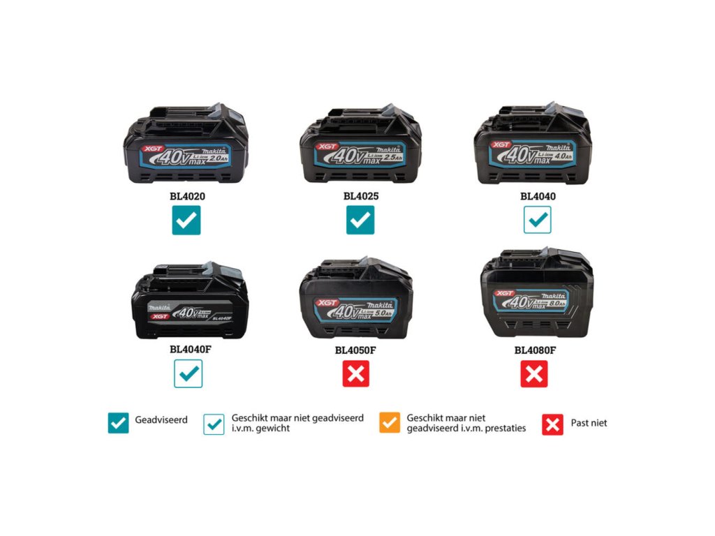 - Kompatibilné s akumulátormi 40 Vmax: 4,0 Ah / 2,5 Ah / 2,0 Ah