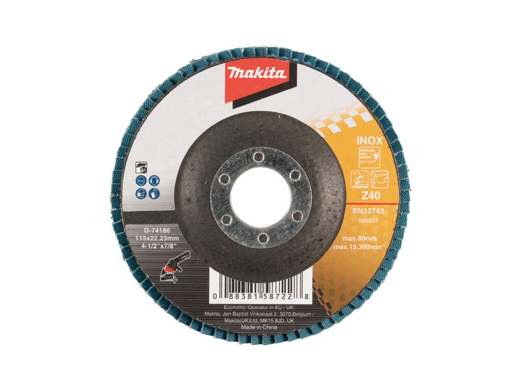 Makita Lamelové brúsny kotúč na nehrdzavejúcu oceľ 115 mm / 22,23 mm, K40, D-74186