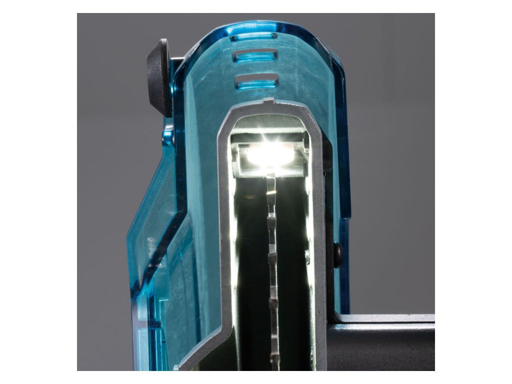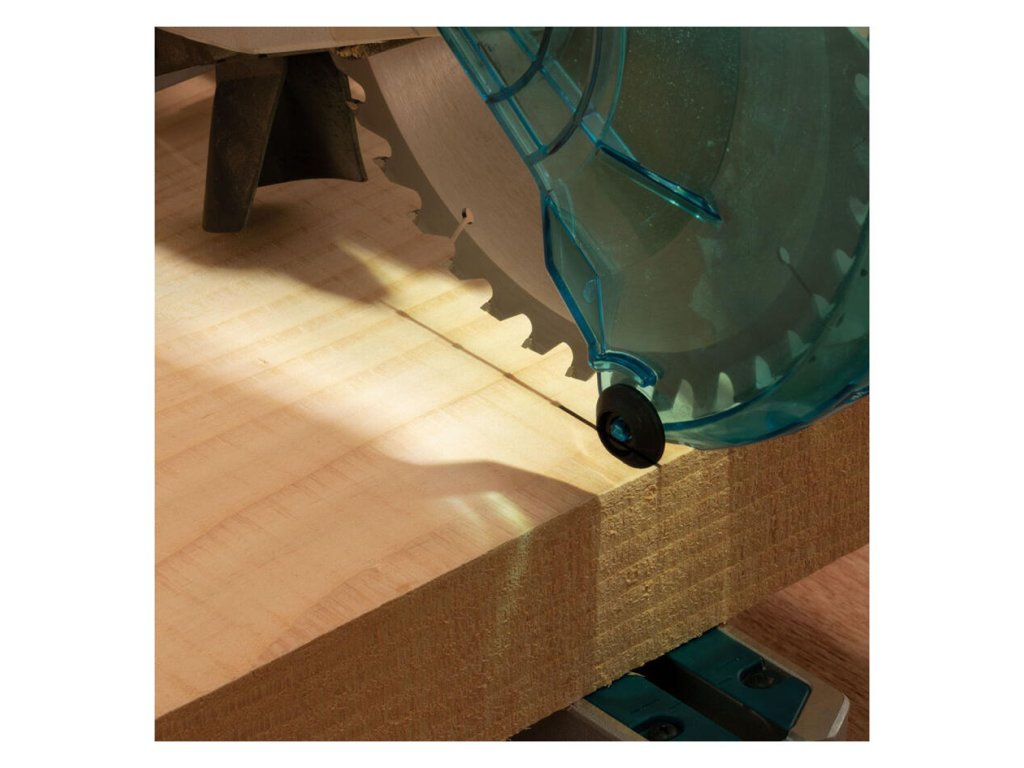 - LED pracovné svetlo vrhá tieň pílového kotuča na obrobok ako presnú líniu rezu