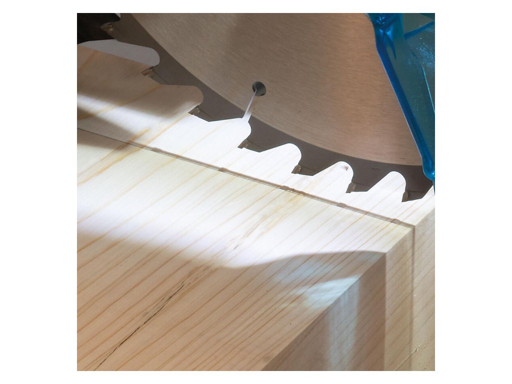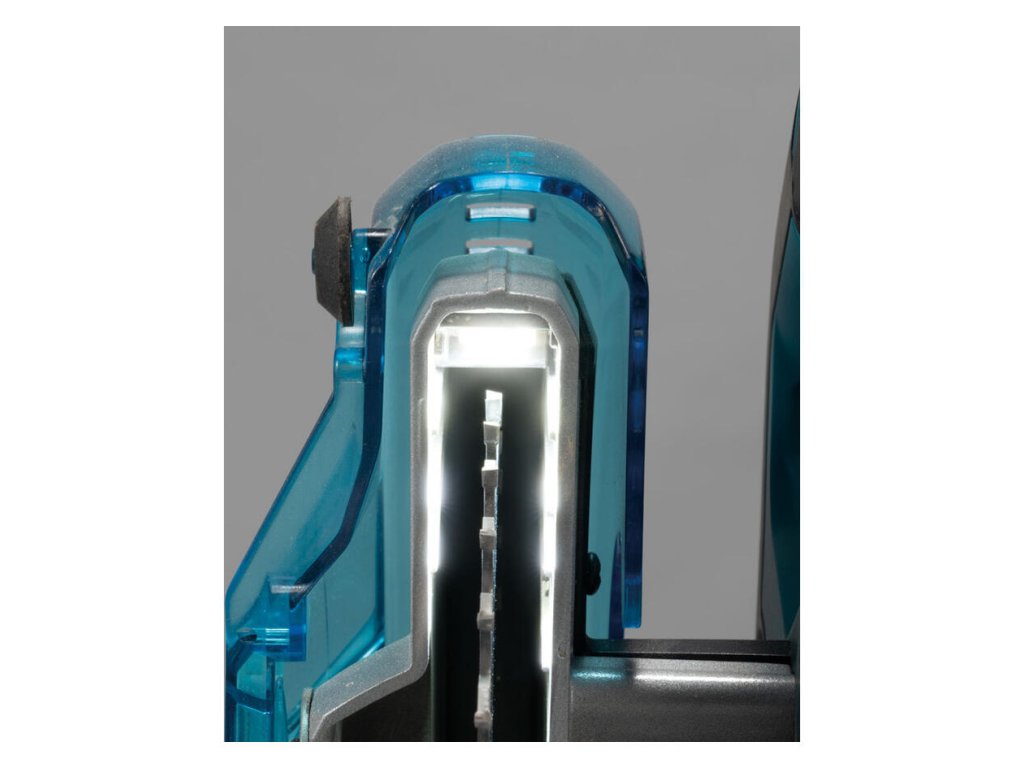 - LED pracovné svetlo vrhá tieň pílového kotuča na obrobok ako presnú líniu rezu