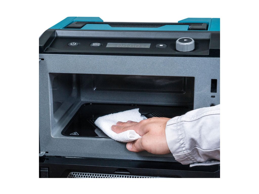 - S dvomi plne nabitými batériami BL4040 a mikrovlnným výkonom 500 W dokáže spotrebič zohriať nádobu s chladenými jedlami približne 5-krát alebo 200 ml hrnček približne 8-krát