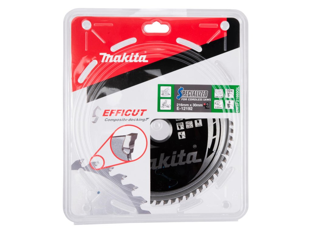 Pílový kotúč EFFICUT určené pre pílenie WPC dosiek 216/30mm Zuby: 60 - Makita