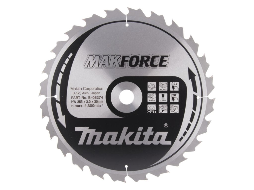 Makita Pílový kotúč na drevo MAKForce 355 mm / 30 mm / 24z, B-08274 MA
