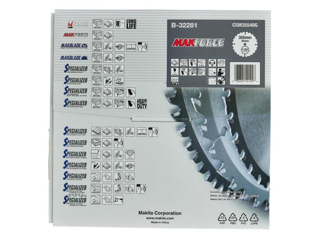 Makita Pílový kotúč na drevo MAKForce 355 mm / 30 mm / 40z, B-32281 MA