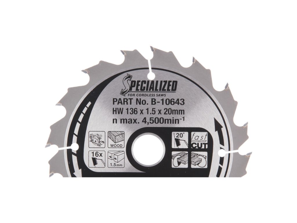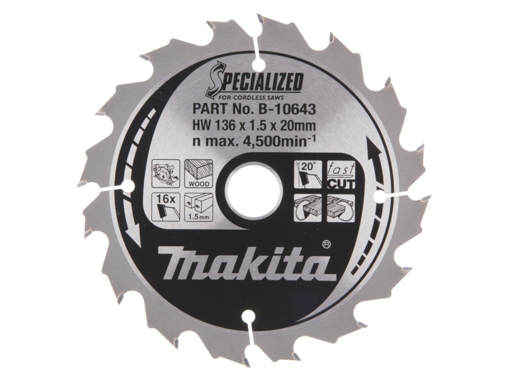 Makita pílový kotúč pre akú kotúčovú pílu na drevo 136 mm / 20 mm / 16z, B-10643 MA