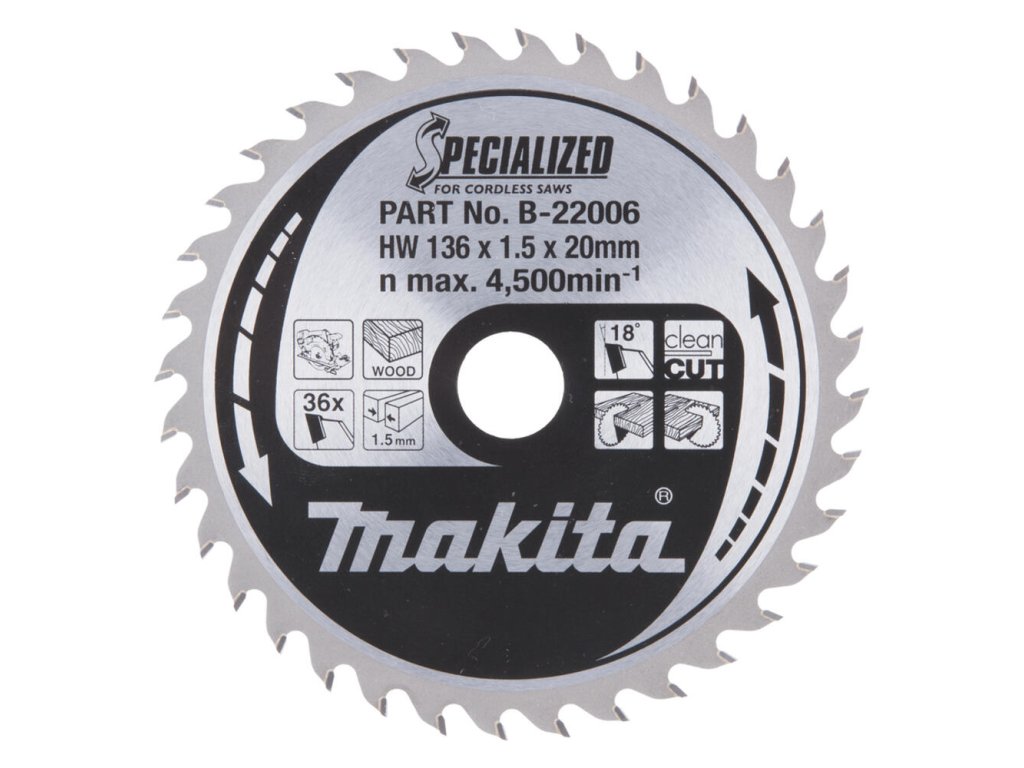 Makita pílový kotúč pre akú kotúčovú pílu na drevo 136 mm / 20 mm / 36z, B-22006 MA