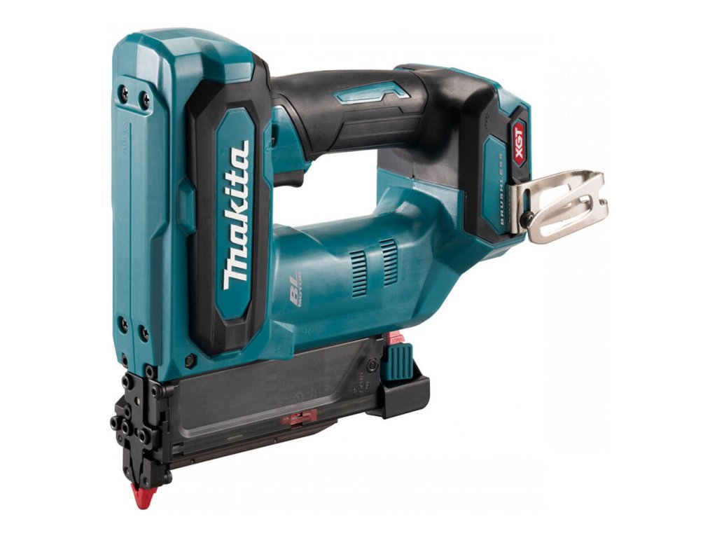 - Ľahká a kompaktná akumulátorová klincovačka 40 V max XGT určená hlavne pre práce v interieroch na klincovanie soklových líšt, rôznych rámov kde je potrebné zachovanie hladkého povrchu.