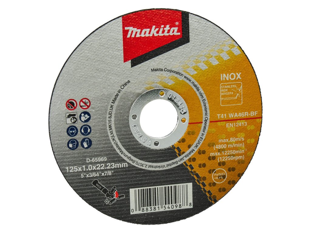 - Rezné kotúče na nehrdzavejúcu oceľ s priemerom 125 mm a hrúbkou 1,0 mm.
