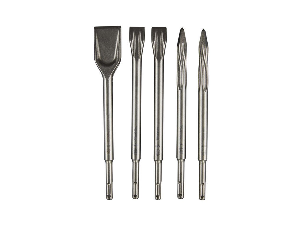 Samoostriace dláta SDS-Plus v sade v plastovom obale Sekáče ploché 250 x 40 1x; Dláto ploché 250 x 20 2x a očný zub 250 mm 2x, 5 ks