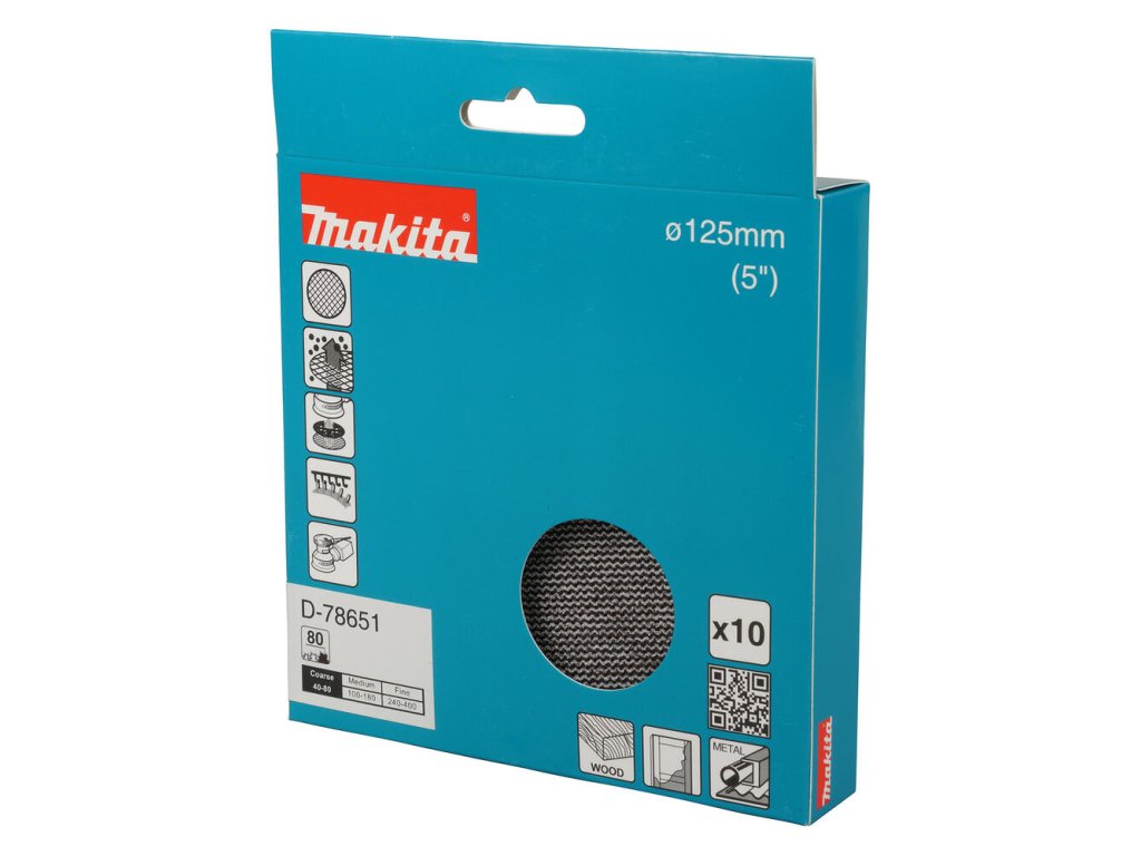 Makita Sieťované brúsne papiere 125 mm, zrnitosť 80, 10 ks D-78651
