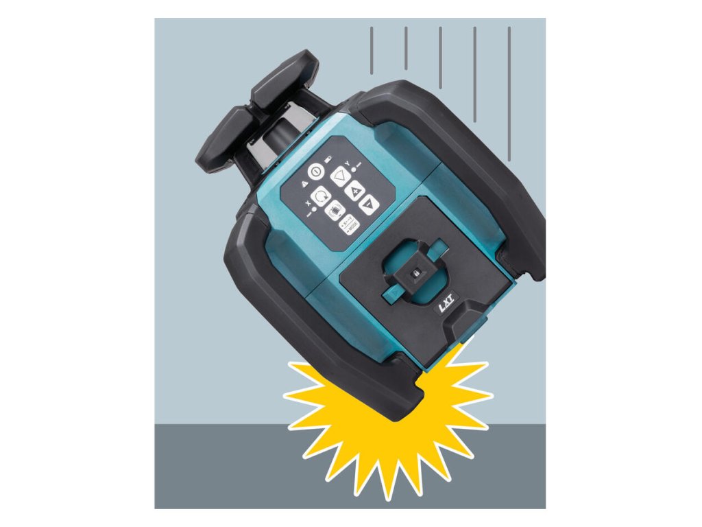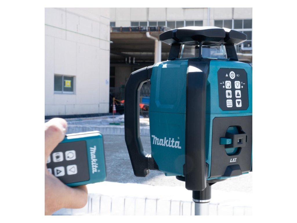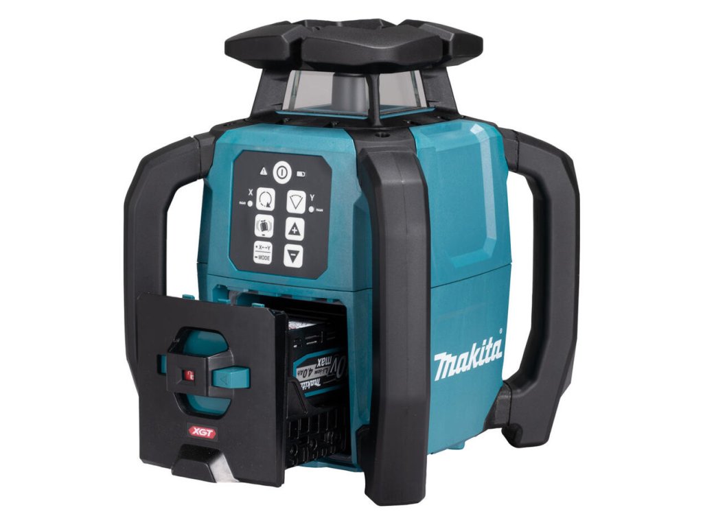 Makita SKR001Z je profesionálny akumulátorový rotačný laser s **zeleným lúčom**, ktorý ponúka extrémny prevádzkový dosah až 800 metrov (s prijímačom). Unikátna je jeho kompatibilita s tromi akumulátorovými platformami Makita (XGT, LXT, CXT) vďaka vymeniteľným slotom na batérie. Presnosť detekcie je ±0,5 mm na 10 m.