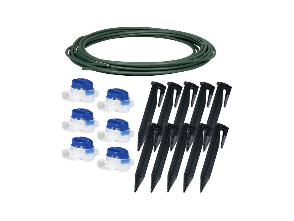 - Montážna sada (6 x spojka drôtu, 10 ks upevňovací kolík, drôt 5 m).