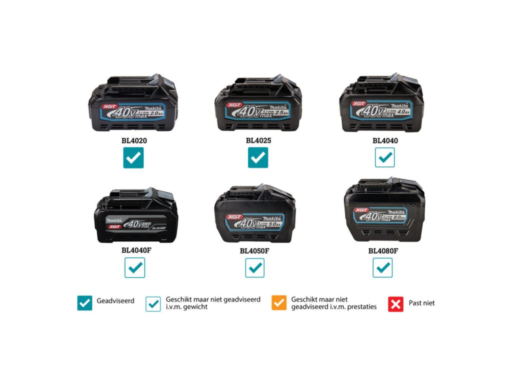 - Kompatibilné s akumulátormi 40 V max: 8,0 Ah / 5,0 Ah / 4,0 Ah / 2,5 Ah / 2,0 Ah