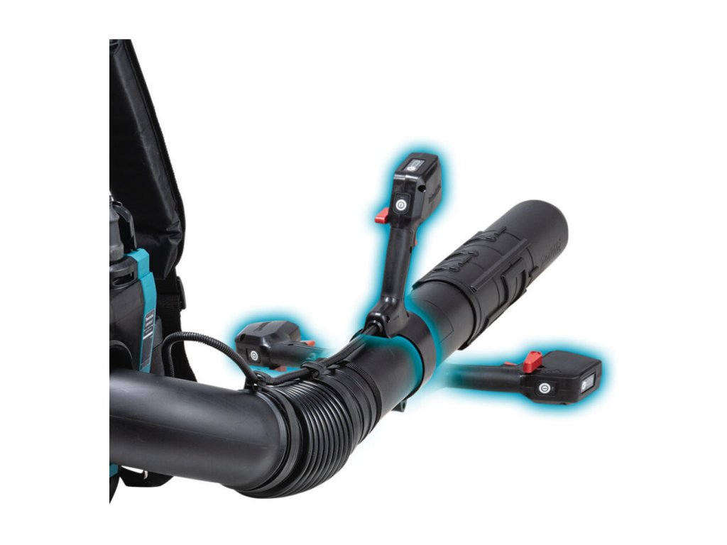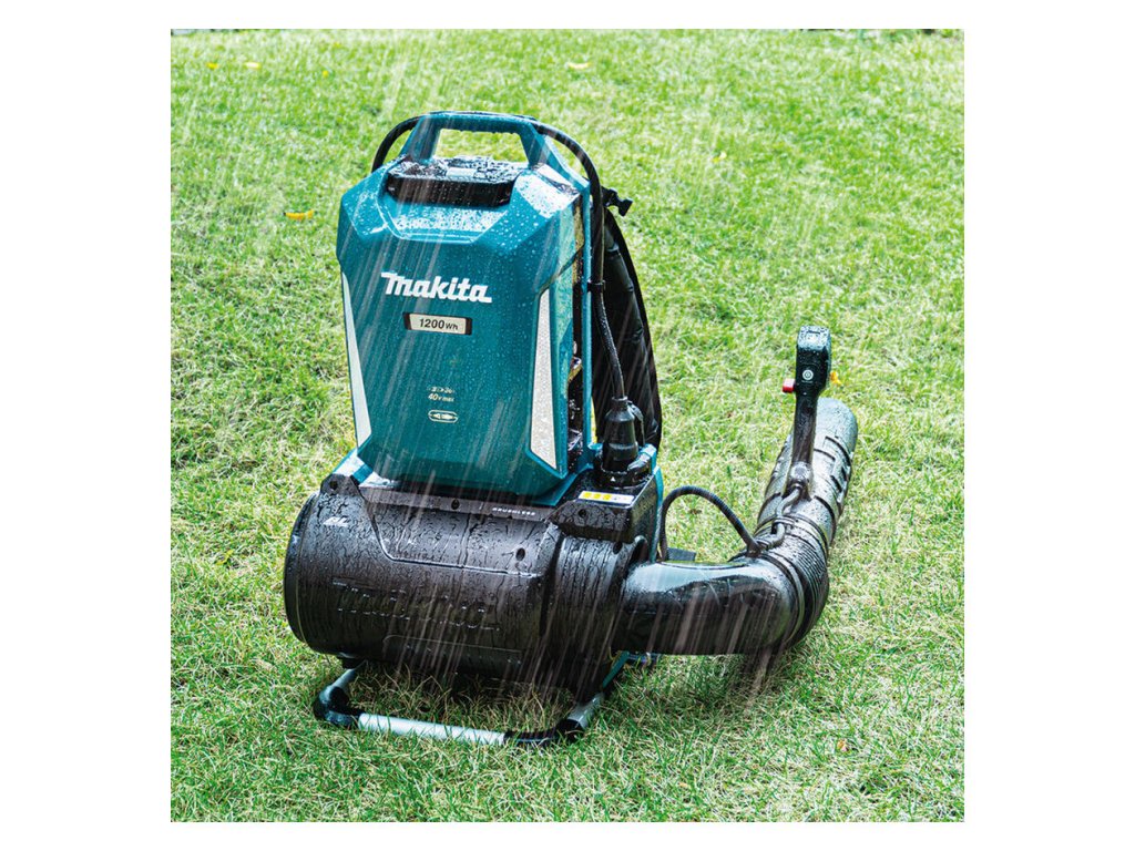 - Silný akumulátorový chrbtový fúkač lístia, porovnateľný s fúkačom lístia poháňaným palivom s objemom 50 cm3.