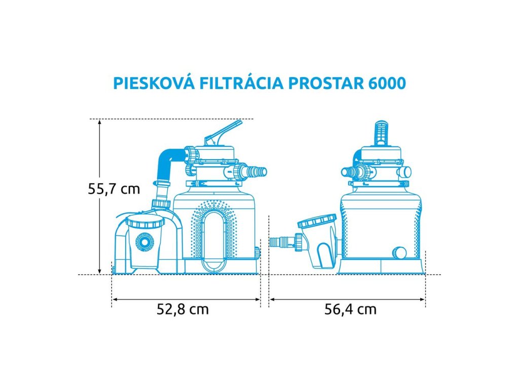 Filtračný systém pieskovej filtrácie ProStar 6000 sa skladá z filtračnej nádoby, do ktorej sa zmestí 18 kg filtračného piesku. Nádoba je vyrobená z vysoko kvalitného polypropylénu (PP). Odoláva korózii a bežne dostupným chemikáliám používaných v bazénoch.