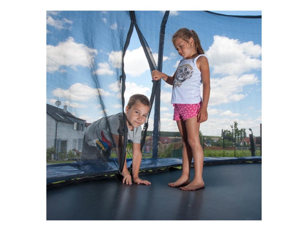 Vnútornú ochrannú sieť nájdete priamo v balení, nemusíte si ju dokupovať zvlášť. Vnútorná ochranná sieť je bezpečnejšia ako vonkajšia sieť - bráni prístupu skákajúceho do časti s pružinami. Vstupný priestor je zaistený tromi prackami a bráni vypadnutiu. Tyče sú obalené ochranným návlekom z mäkčenej peny. Nohy trampolíny sú samostatné a zvyšujú stabilitu celej trampolíny. Spojenie tyčí nôh trampolíny a siete je istené špeciálnymi sponami.