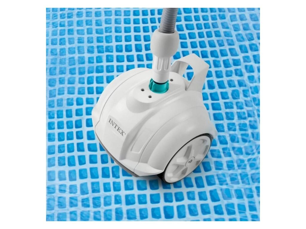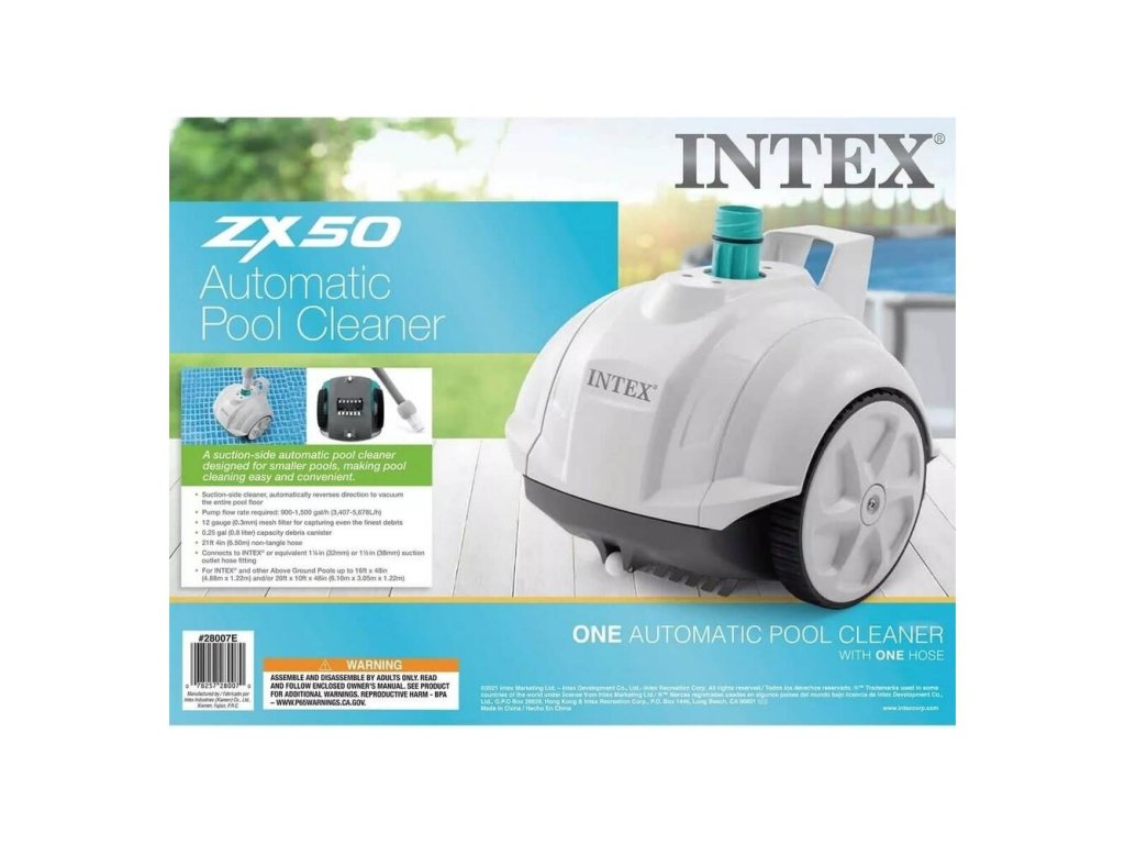 Bazénový vysávač Intex ZX50 je poloautomatický čistič dna, ktorý funguje na základe tlaku čerpadla bazéna. Zo dna sa automaticky vysáva lístie, piesok a hmyz. Jeden koniec hadice pripojíte k vysávaču a druhý koniec k výstupu z bazéna, ktorým sa čistá voda z bazénovej filtrácie vracia späť do bazéna. Všetky nečistoty sú odstránené saním čerpadla. Na optimálne fungovanie potrebuje robot filtračné čerpadlo s výkonom 3407-5678 litrov za hodinu.