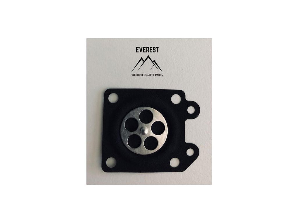 Náhradná regulačná membrána (často nazývaná aj "membrána s plieškom"), ktorá ovláda ihlový ventil v karburátoroch čínskych krovinorezov. Ak je stvrdnutá alebo deformovaná, motor nedrží voľnobeh alebo nejde do otáčok.