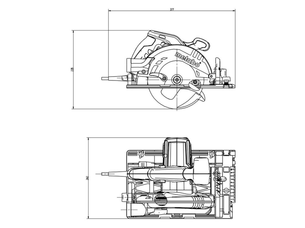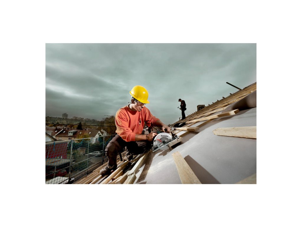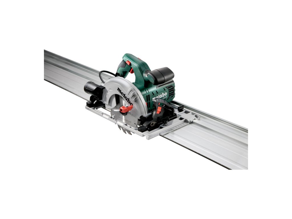 - Robustná ručná kotúčová píla, priamo použiteľná na vodiacich lištách od firmy Metabo a iných výrobcov na presné, dlhé rezy