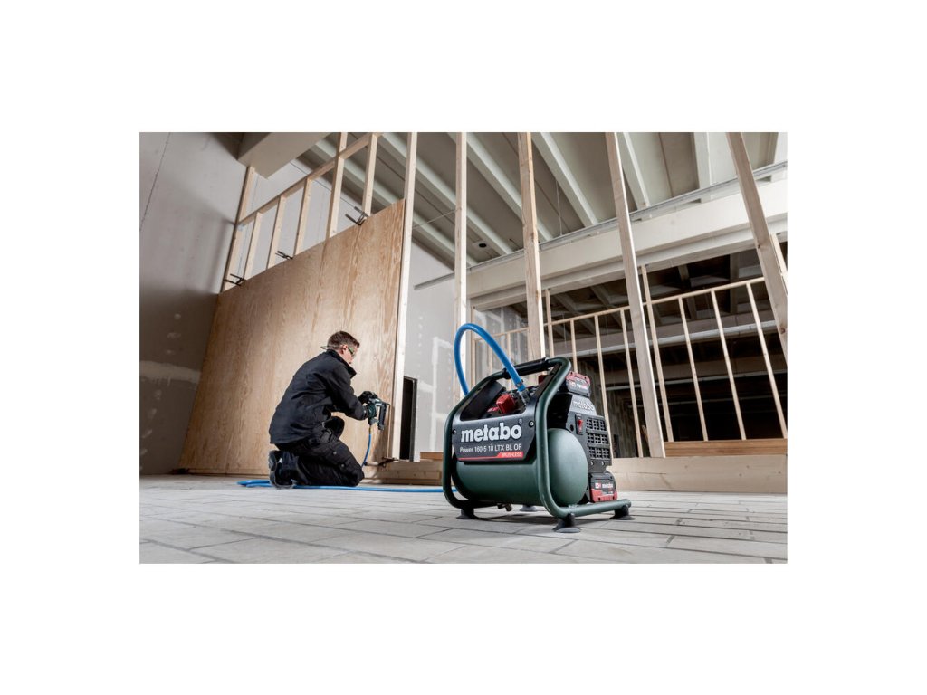 - Ľahší a výkonnejší akumulátorový kompresor s bezuhlíkovým motorom pre použitie v interiéri a na staveniskách.