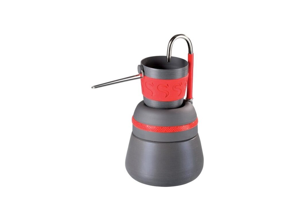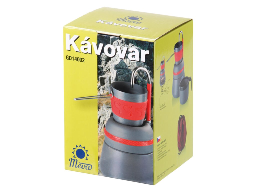 Kávovar s eloxovanou povrchovou úpravou. Kávovar je vhodný pre uvarenie kávy vo vonkajších podmienkach a pojme 350 ml vody. Šálku, ktorý je súčasťou kávovaru, má objem 150 ml.