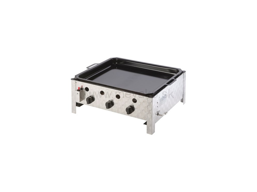 Brúsená nerez, termopoistka, piezo, 3 horáky. Príslušenstvo pre pripojenie k 5 kg a 10 kg fľaši je súčasťou balenia.
