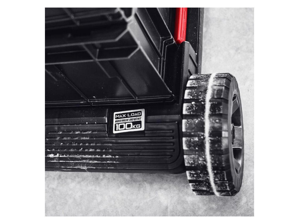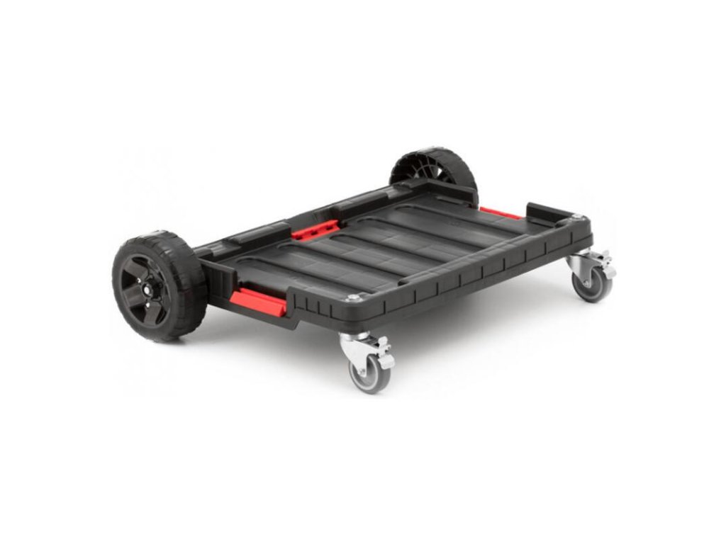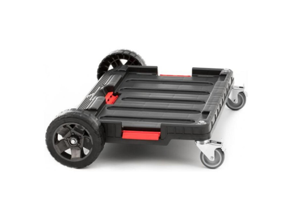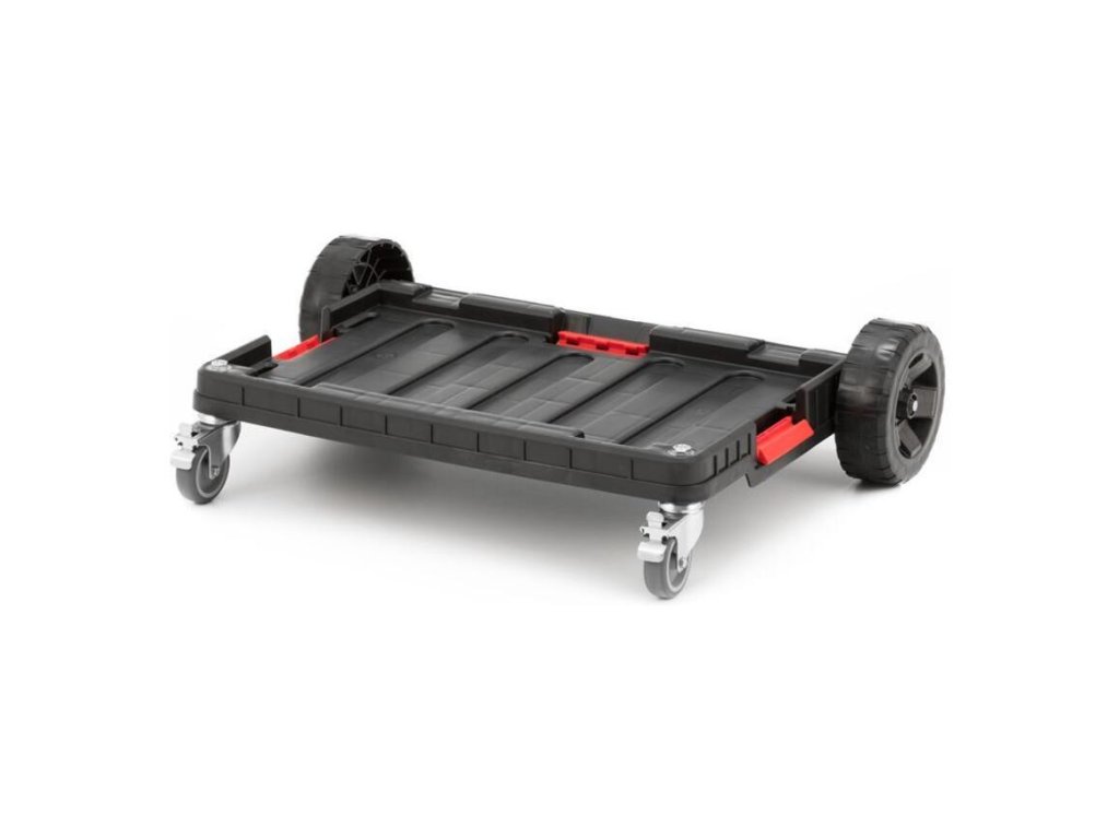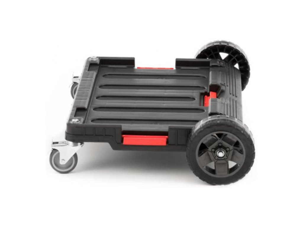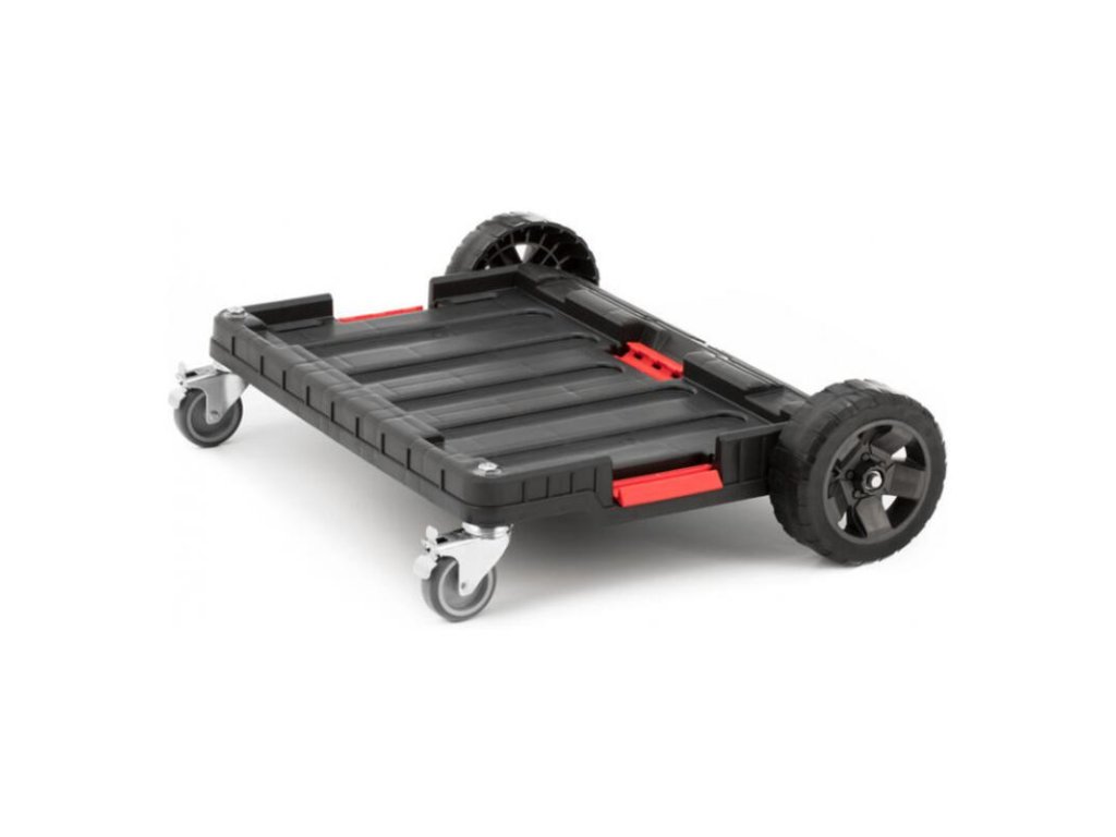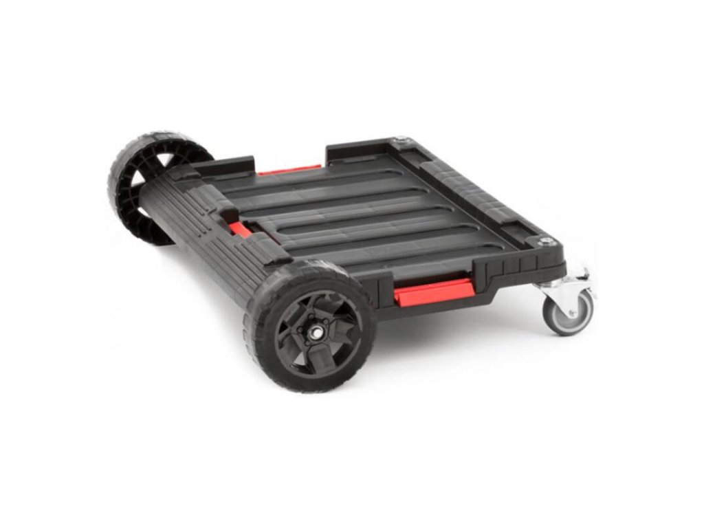 - 2 gumené odolné kolesá, pomocou ktorých prejdete aj cez prekážky ako napr. schody, rampy alebo blato- 2 kovové otočné kolieska s brzdou zabezpečujú vynikajúcu ovládateľnosť a chránia súpravu pred nechceným pohybom