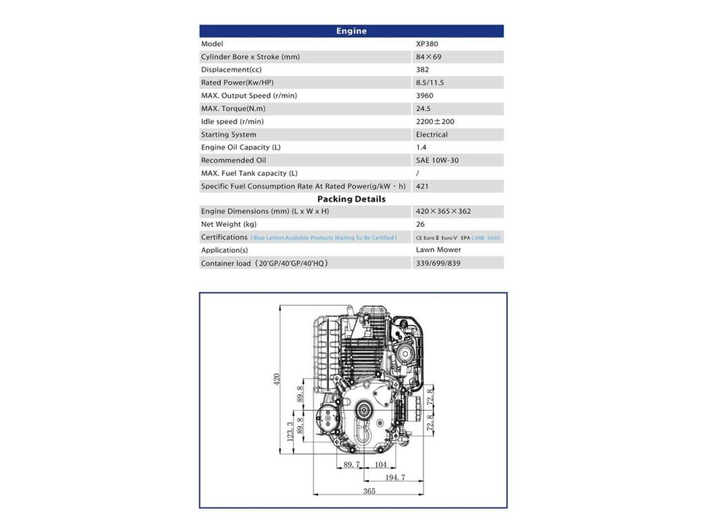 Motor vertikálny ZONGSHEN XP380A 11,5 HP (náhrada Briggs Powerbuilt)