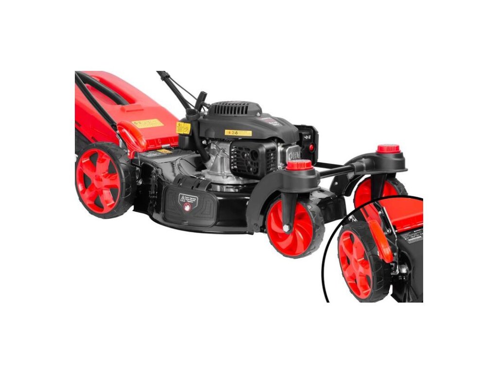 Dajú sa otočné kolesá zablokovať?Áno, priamo na kosačke sa nachádza aretačný mechanizmus, ktorým kolesá zafixujete v priamom smere, čo je vhodné na kosenie dlhých rovných úsekov.