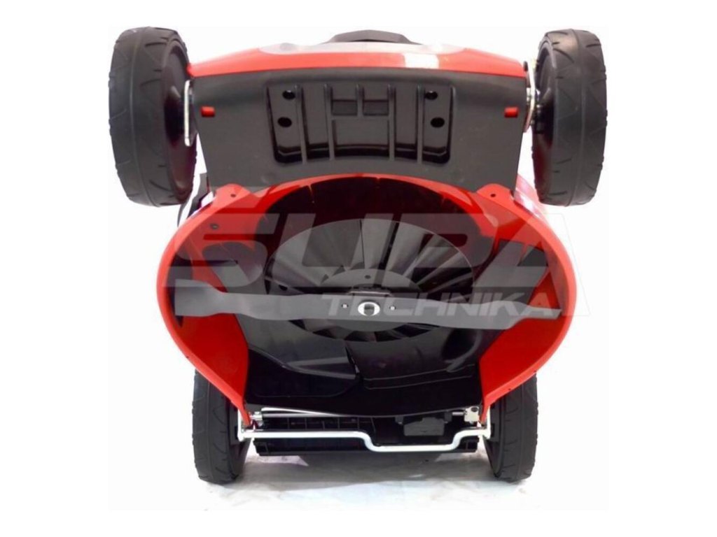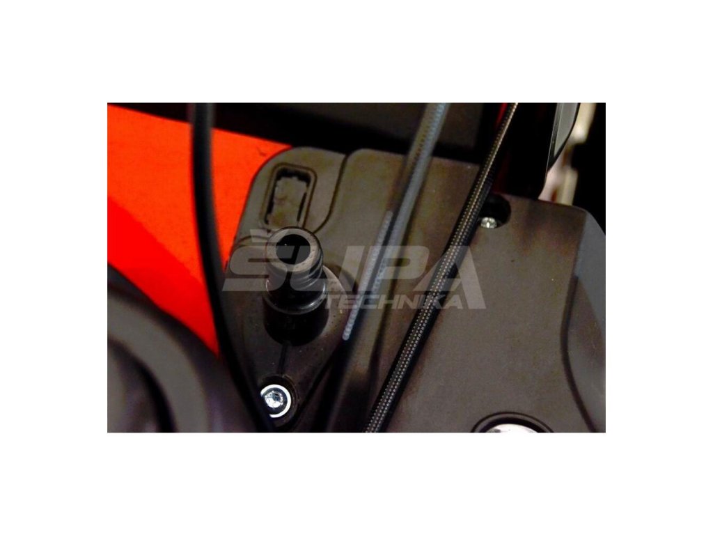 Stačí pripojiť záhradnú hadicu na rýchlospojku skeletu, pustiť vodu a na chvíľu naštartovať motor s rotujúcim nožom. Voda dokonale vymyje podvozok od trávy.