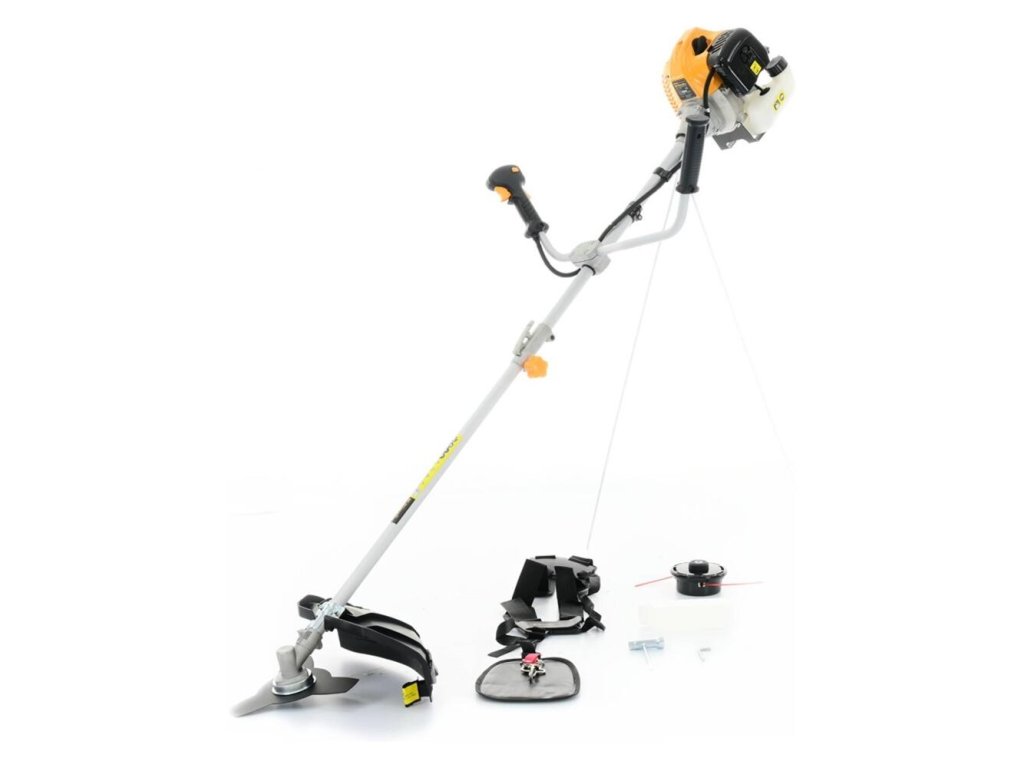 Je tento stroj vhodný aj na vysokú burinu?Áno, vďaka motoru s objemom 43 cm³ a priloženému oceľovému nožu si stroj hravo poradí aj s prerastenou burinou a krovím.
