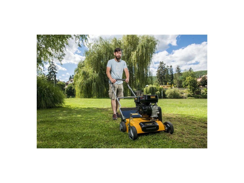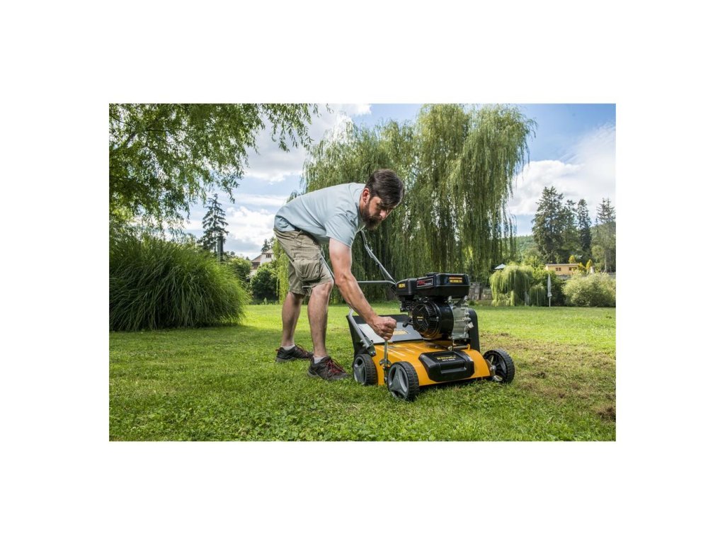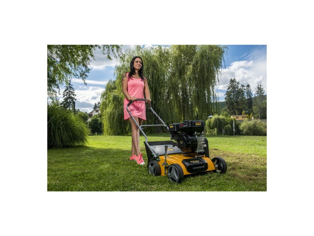 Benzínová vertikutácia Riwall RPV 4058 je veľmi užitočný nástroj pre každého, kto chce mať zdravý, hustý a zelený trávnik. Základom stroja sú vertikálne rotujúce nože, ktoré prerežú vrchnú vrstvu pôdy, čím umožnia ľahší prístup kyslíka, vody a hnojiva ku koreňom. Čepele tiež odstraňujú z trávnika prebytočný mach a plevel. Trávnik tak lepšie dýcha a rastie. Ak je potrebné trávnik iba zbaviť výmladkov, odumretej trávy, machu atď., je k dispozícii druhý valec, ktorý je vybavený pružnými drôtmi. Robustný stroj je vybavený tak, aby práca s ním bola vždy pohodlná. Riadidlá sú ergonomicky tvarované, nastavenie vertikálnej hĺbky sa ľahko vykonáva pomocou jedinej páky a 4 veľké kolesá umožňujú plynulý pohyb aj na nerovnom teréne. Veľmi výkonný motor s objemom 212 cm3 si poradí aj s dlhými neudržiavanými trávnikmi a zaručuje dlhú životnosť. Široký výsypný otvor umožňuje ľahké vysypanie trávy na voľné priestranstvo alebo do objemného koša. V prípade prepravy stroja prídu vhod ľahko sklopné riadidlá. Záber 40 cm je vhodný pre trávnaté plochy do 1500 m2.