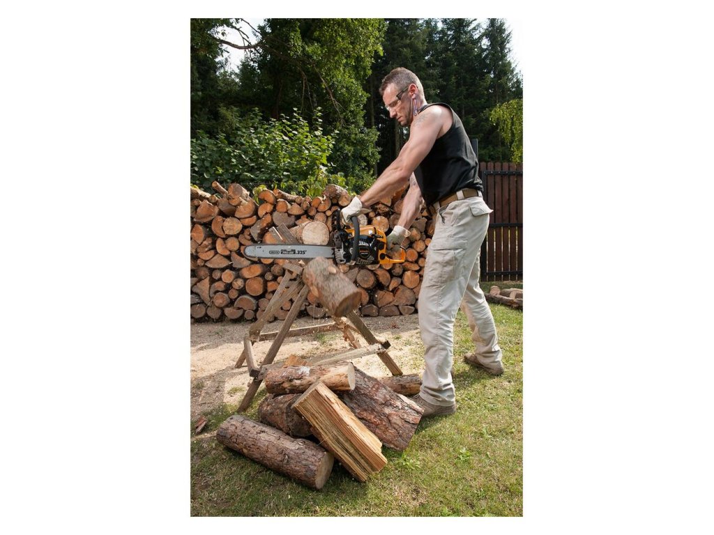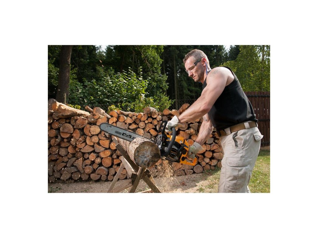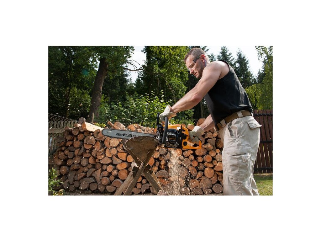 - Robustná konštrukcia a vysoký výkon píly sú vhodné aj na rezanie veľkých kmeňov, prerezávanie lesných porastov, sadov alebo prípravu palivového dreva na vykurovaciu sezónu