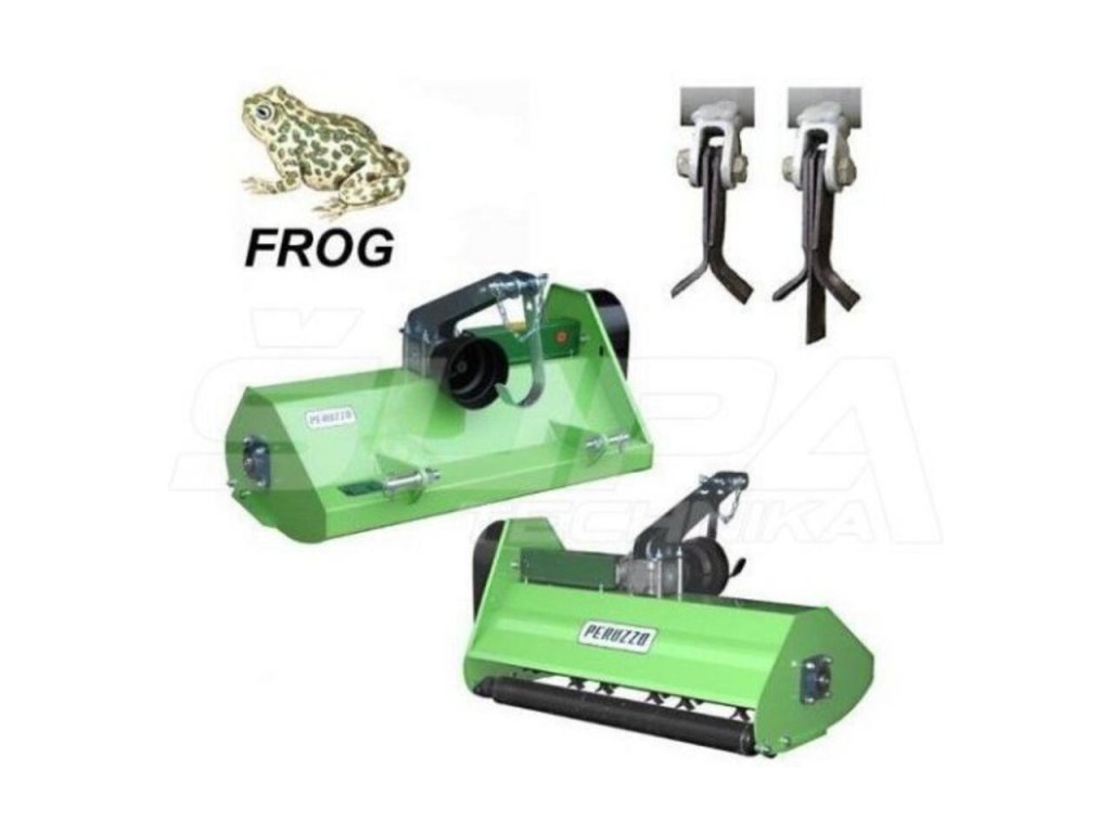 Nesený mulčovač Peruzzo Frog 1120 pre zadnú agregáciu na nosiči, so šírkou pracovného záberu 112 cm. Mulčovač je vhodný pre ľahké traktory s 3-bodovým závesom kategórie I.