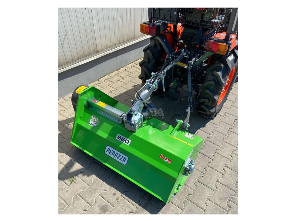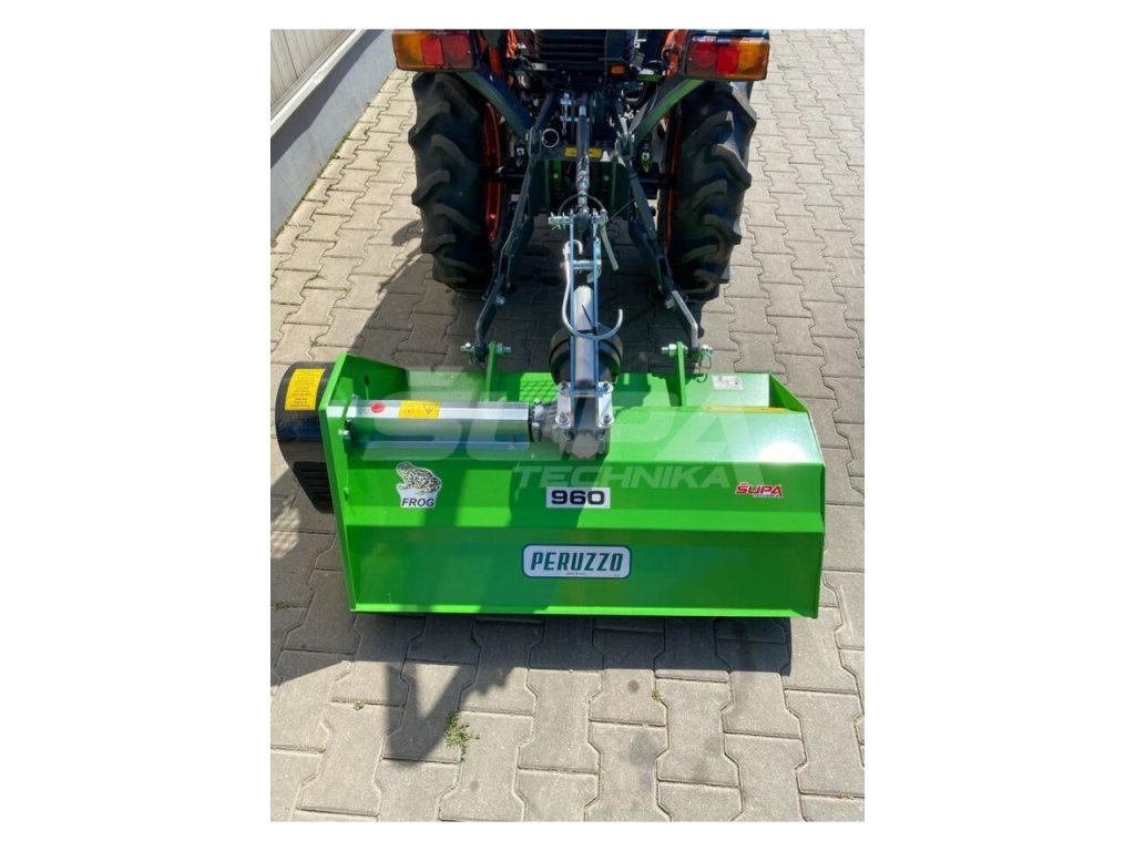 Nesený mulčovač Peruzzo Frog 960 pre zadnú agregáciu na nosiči, so šírkou pracovného záberu 96 cm. Mulčovač je vhodný pre ľahké traktory s 3-bodovým závesom kategórie I.