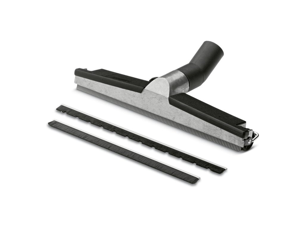 Viacúčelová hubica z hliníka s pracovnou šírkou 370 mm a priemerom 40. S bočnými výškovo prestaviteľnými kolieskami, štetinová lišta (6.903-064.0) a olejuvzdorné gumené stierky (6.903-081.0). Iba pre NT vysávače.