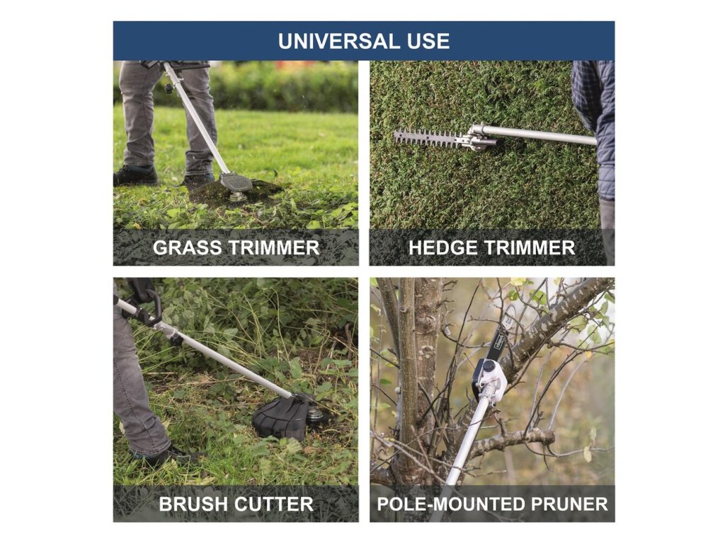 Potrebujete vyriešiť viacero úloh jedným strojom? Scheppach BC-MFH400-X je multifunkčný 40V systém určený na komplexné záhradné práce. Nahradí strunový vyžínač na začisťovanie okrajov, krovinorez na vyžínanie húževnatej buriny, nožnice na živý plot aj vyvetvovaciu pílu na konáre vo výškach.Profesionálny výkon v každom nadstavci