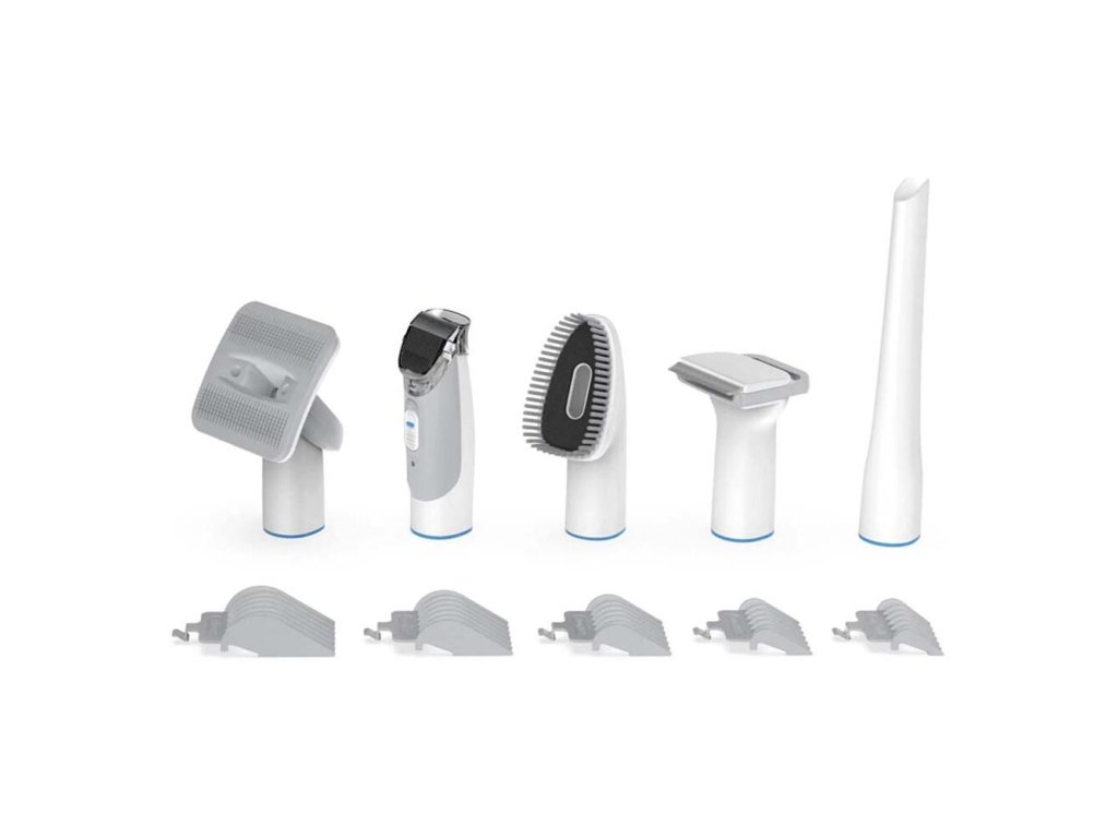 Súprava s vysávačom obsahuje päť rôznych nástavcov. Vyčesávaciu kefu, hrebeň na trimovanie DeShedding, elektrický zastrihávač, štrbinovú a kefovú hubicu na jednoduché čistenie.