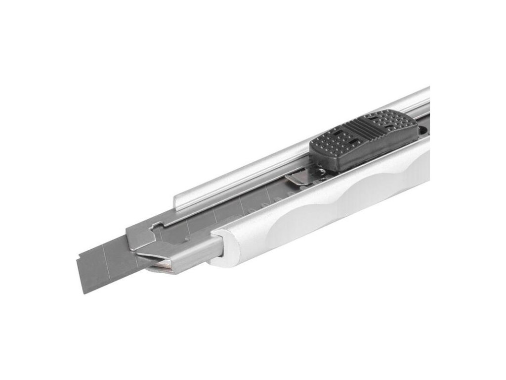 Odlamovací nôž Strend pro by nemal chýbať vo vašej dielni. Disponuje kovovou vodiacou lištou, vysuvnou čepeľou, bezpečnostnou aretáciou, ergonomickou rukoväťou a hlinikovým krytom. Zaručuje skvelý výsledok a bezpečnú prácu. Šírka čepele je 18 mm. Čepeľ je vyrobená z hliníka.Technické parametre: