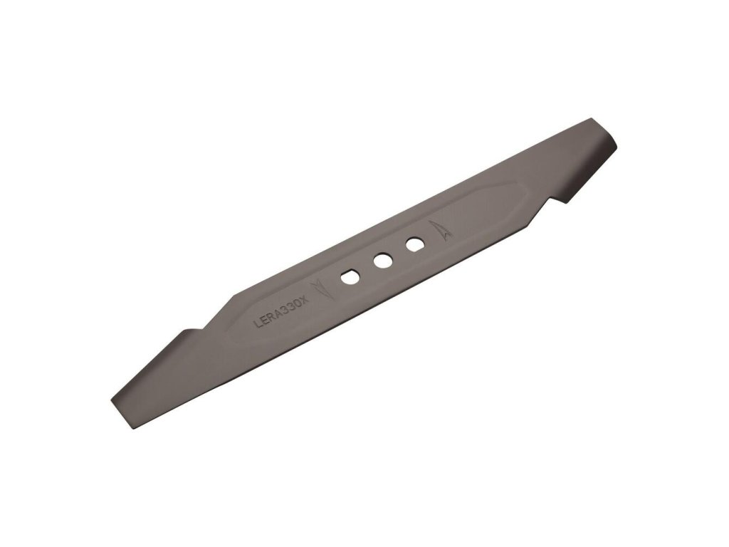 Kvalitný oceľový nôž určený pre menšie kosačky predávané v sieti OBI pod značkou LUX Tools. Je dôležité pravidelne kontrolovať ostrosť a vyváženie noža, aby nedochádzalo k vibráciám, ktoré môžu poškodiť elektromotor.