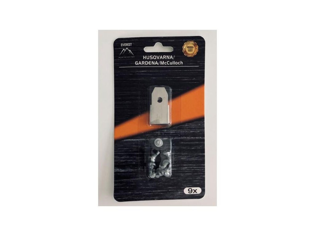 NÔŽ ROBOTICKÝCH KOSAČEK HUSQVARNA GARDENA 35mm - SADA 9 ks EVERESTHusqvarna: G1, G2, 105, 210, 220AC, 230ACX, 260ACX, 265ACX, 305, 308, 310, 315, 320, 330X, 330ACX, 420, 430X, 440, 450X; Gardena: R38Li, R40Li, R45Li, R50Li, R70Li, R75Li, R80Li, R100Li, R130Li, R160Li, R165, R180 Silenco, Silenco City, Silenco+, Silenco Smart; McCulloch: ROB R600, ROB R1000; Herkules: G-Froce 1000, G-Froce 1500, G-Froce 2500; FLYMO: 1200R; Telsing: 1000, 1500, 2500