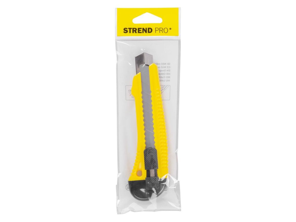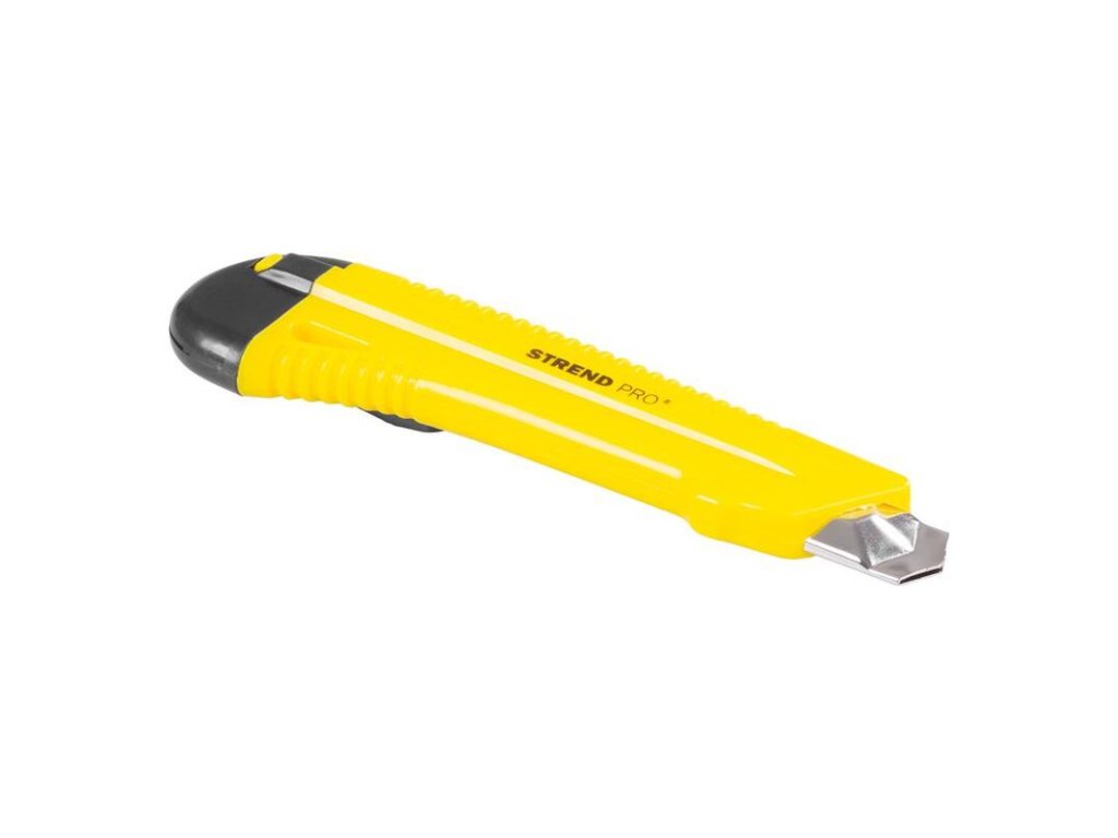 Odlamovací nôž Strend Pro by nemal chýbať vo vašej dielni. Disponuje kovovou vodiacou lištou, výsuvnou čepeľou, bezpečnostnou aretáciou, ergonomckou rukoväťou a plastovým krytom. Zaručuje skvelý výsledok a bezpečnú prácu. Šírka čepele je 18 mm.
