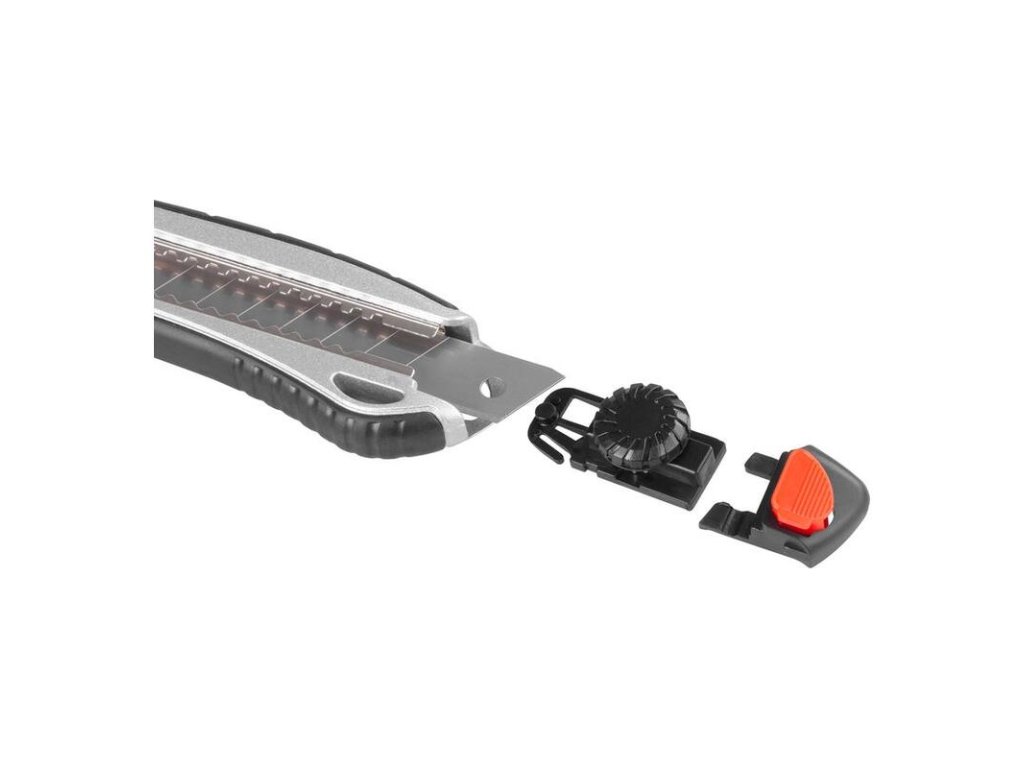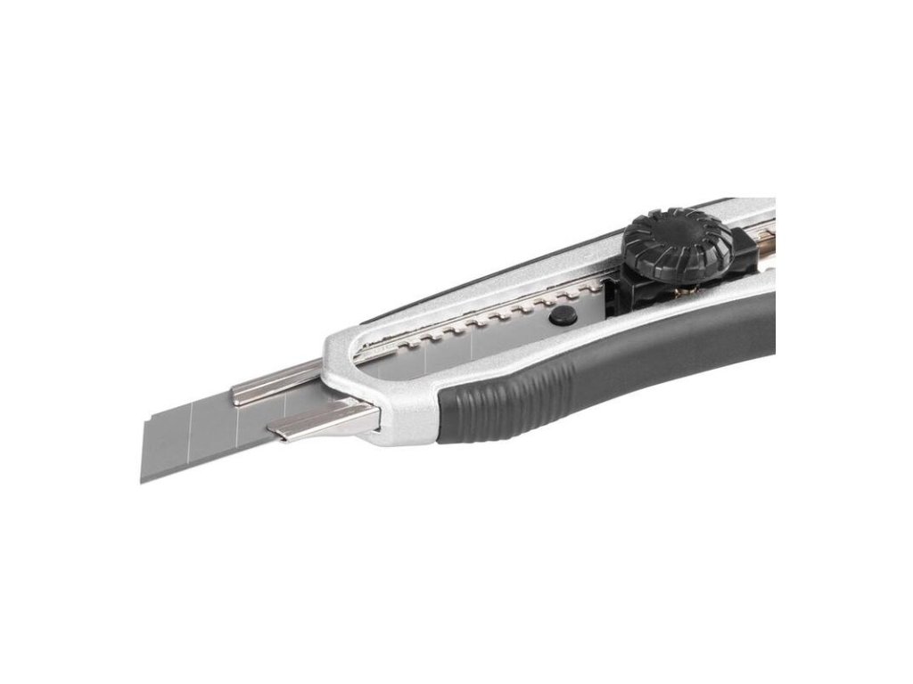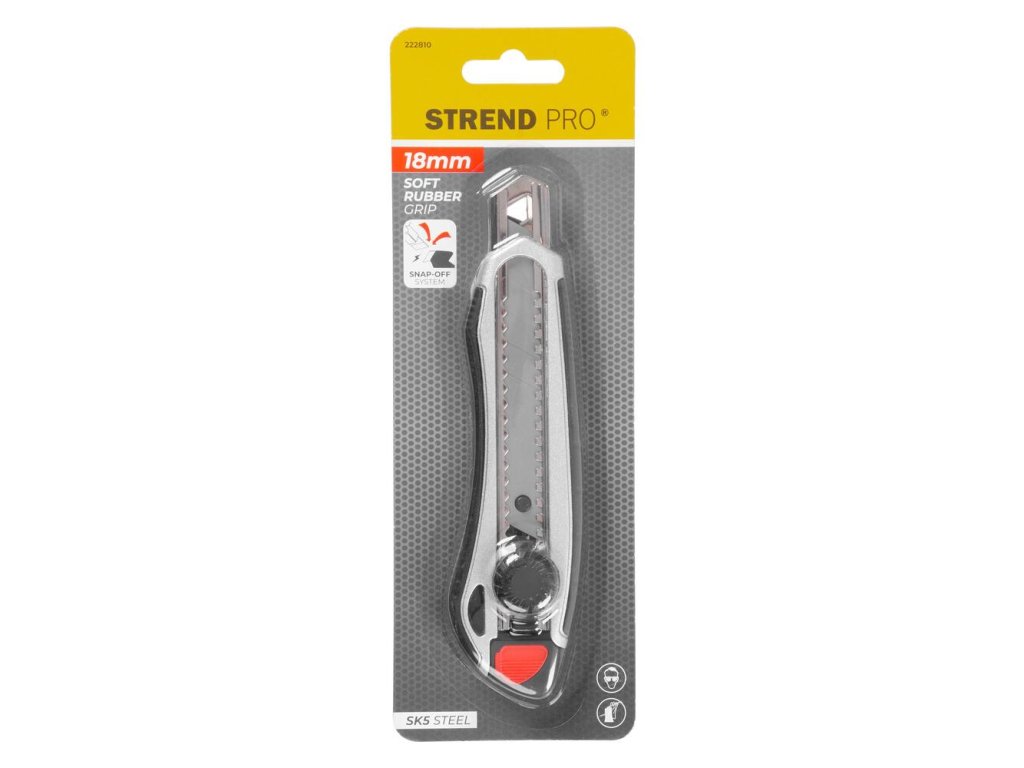 Odlamovací nôž Strend Pro by nemal chýbať vo vašej dielni. Disponuje kovovou vodiacou lištou, vysuvnou čepeľou, kolieskom, bezpečnostnou aretáciou, ergonomickou rukoväťou a plastovým krytom. Zaručuje skvelý výsledok a bezpečnú prácu. Šírka čepele je 18 mm. Čepeľ je vyrobená z hliníka.
