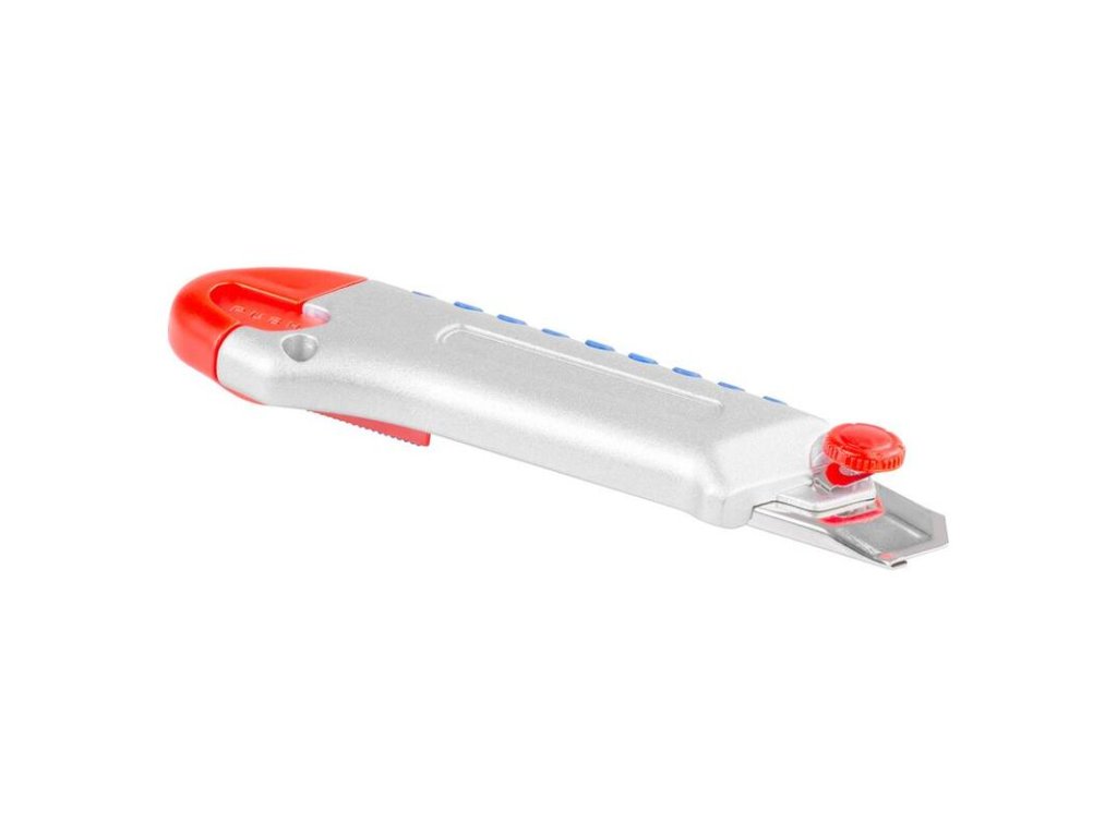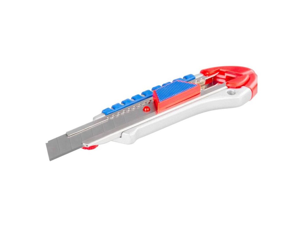 Odlamovací nôž Strend Pro by nemal chýbať vo vašej dielni. Disponuje kovovou vodiacou lištou, vysuvnou čepeľou, bezpečnostnou aretáciou, ergonomickou rukoväťou a plastovým krytom. Zaručuje skvelý výsledok a bezpečnú prácu. Šírka čepele je 22 mm. Čepeľ je vyrobená z hliníka.