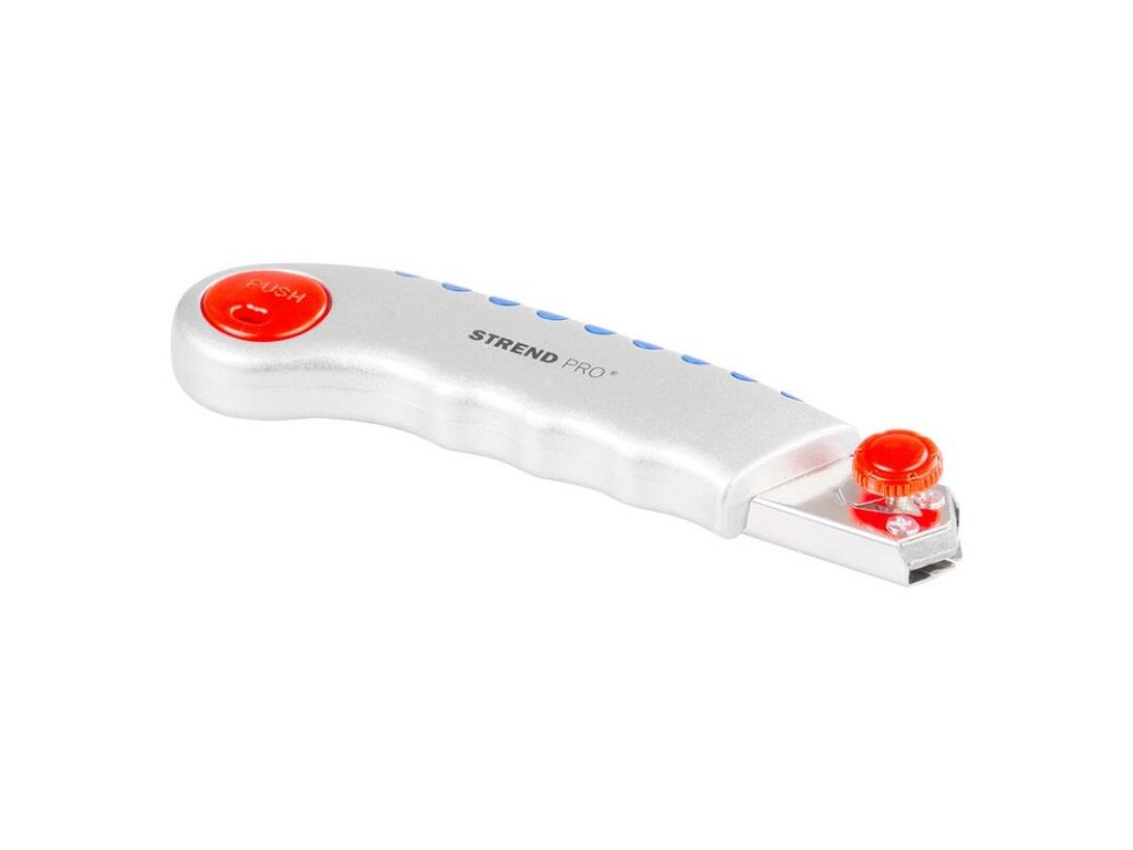 Odlamovací nôž Strend Pro by nemal chýbať vo vašej dielni. Disponuje kovovou vodiacou lištou, vysuvnou čepeľou, bezpečnostnou aretáciou, ergonomickou rukoväťou a plastovým krytom. Zaručuje skvelý výsledok a bezpečnú prácu. Šírka čepele je 18 mm. Čepeľ je vyrobená z hliníka.