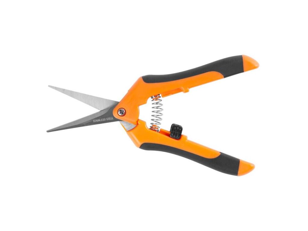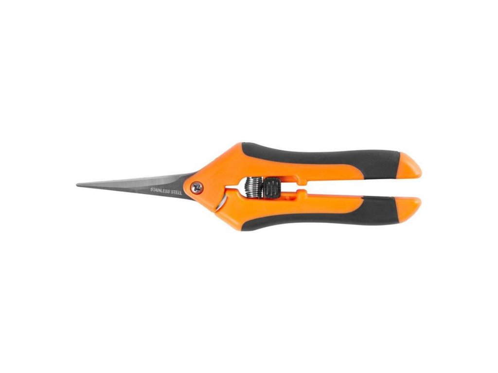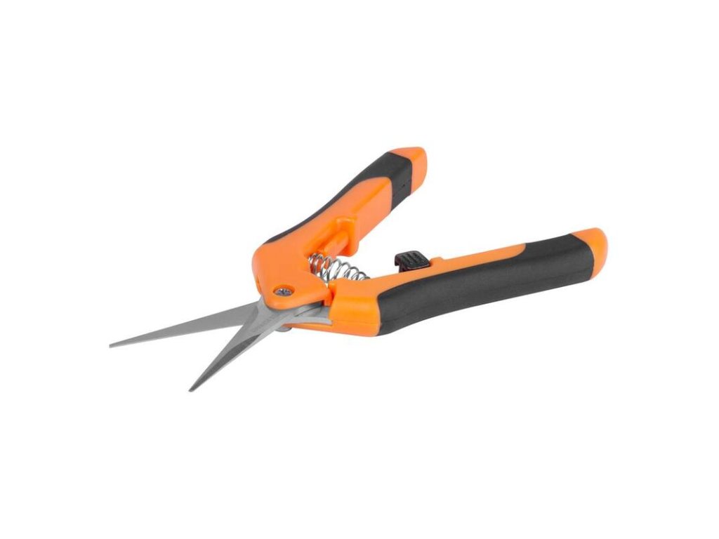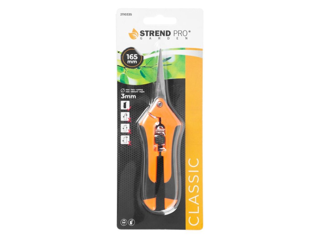 Záhradné zastrihávacie nožnice Strend Pro sú ideálne na strihanie, prestrihávanie a tvarovanie kvetín a vetiev kríkov do priemeru 3 mm. Čepeľ je vyrobená z nerezu. Oranžovo-čierna rukoväť je vybavená bezpečnostným zámkom proti otvoreniu čepele. Rozmer: 165 mm.