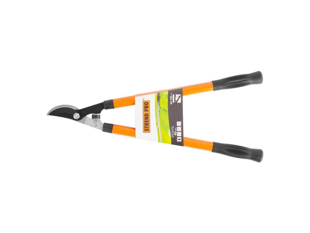 Teleskopické nožnice Strend Pro na konáre sú vyrobené z ocele. Hravo si s nimi poradíte pri strihaní konárov do priemeru 45 mm. Rúčky sú ergonomicky tvarované a sú protišmykové. Dĺžku nožníc si viete nastaviť od 650-100 mm.